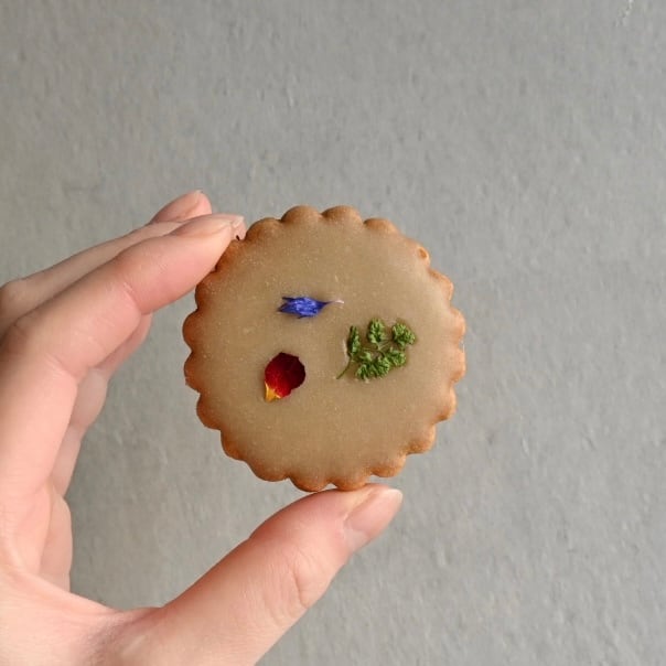 ホロホロのサブレ生地にはマリアージュフレール社のマルコポーロルージュというルイボスティー茶葉がたっぷり。